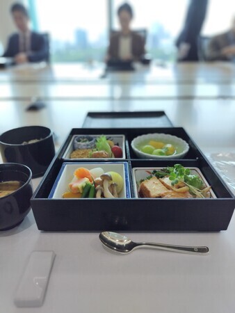 2025-10-10 読売テレビ番組審議会 番組審議会 番組審議会報告|番組向上への取り組み|読売テレビ 今月は久しぶりにヴィーガン弁当。 審議会のランチタイムは番組制作スタッフとの雑談が楽しい。 最早相手は大抵歳下なので「昔はね」という話は極力謹んで現状を聞く。